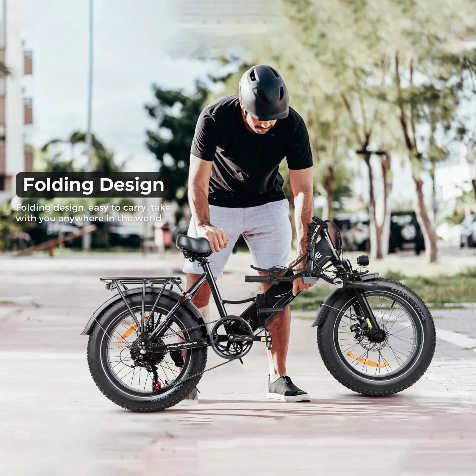 - ⛰️ Připraven do každého terénu: 20″*4,0″ široké pneumatiky (Fatbike) spárované s nastavitelnou přední vidlicí a odpružením sedadla.