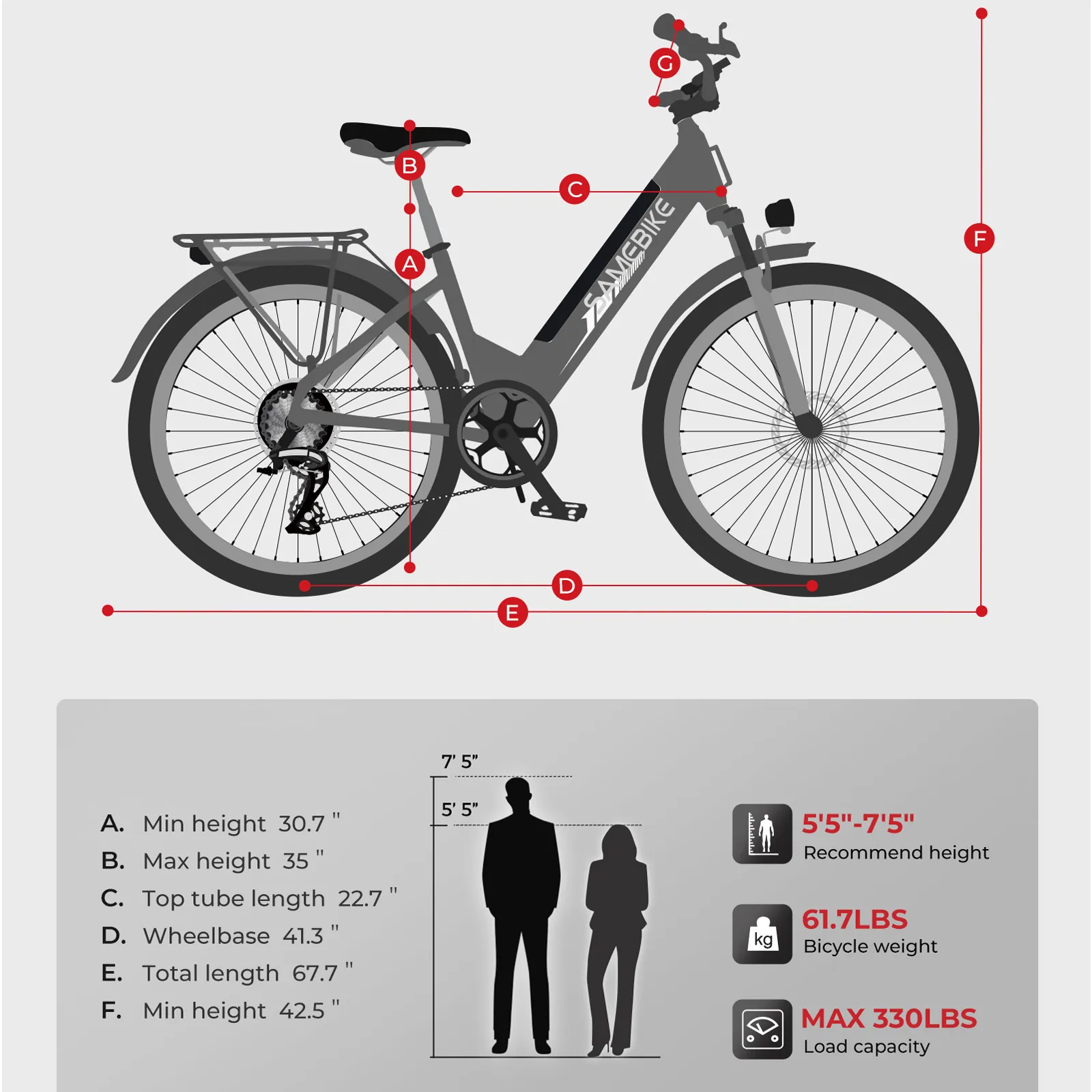 SAMEBIKE RS-A01 Pro Městské elektrokolo pro dojíždění – 26″ Nízký nástup